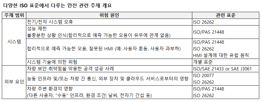위험의 원인에 따른 기능안전 표준 리스트입니다.
